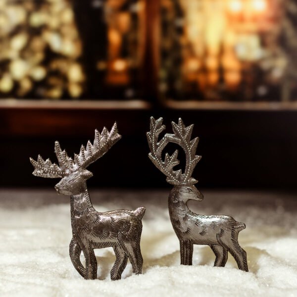 Made from recycled steel drums. this adorable reindeer set helps preserve the steel drum art tradition that has been a part of Haitian culture since the 1950s.